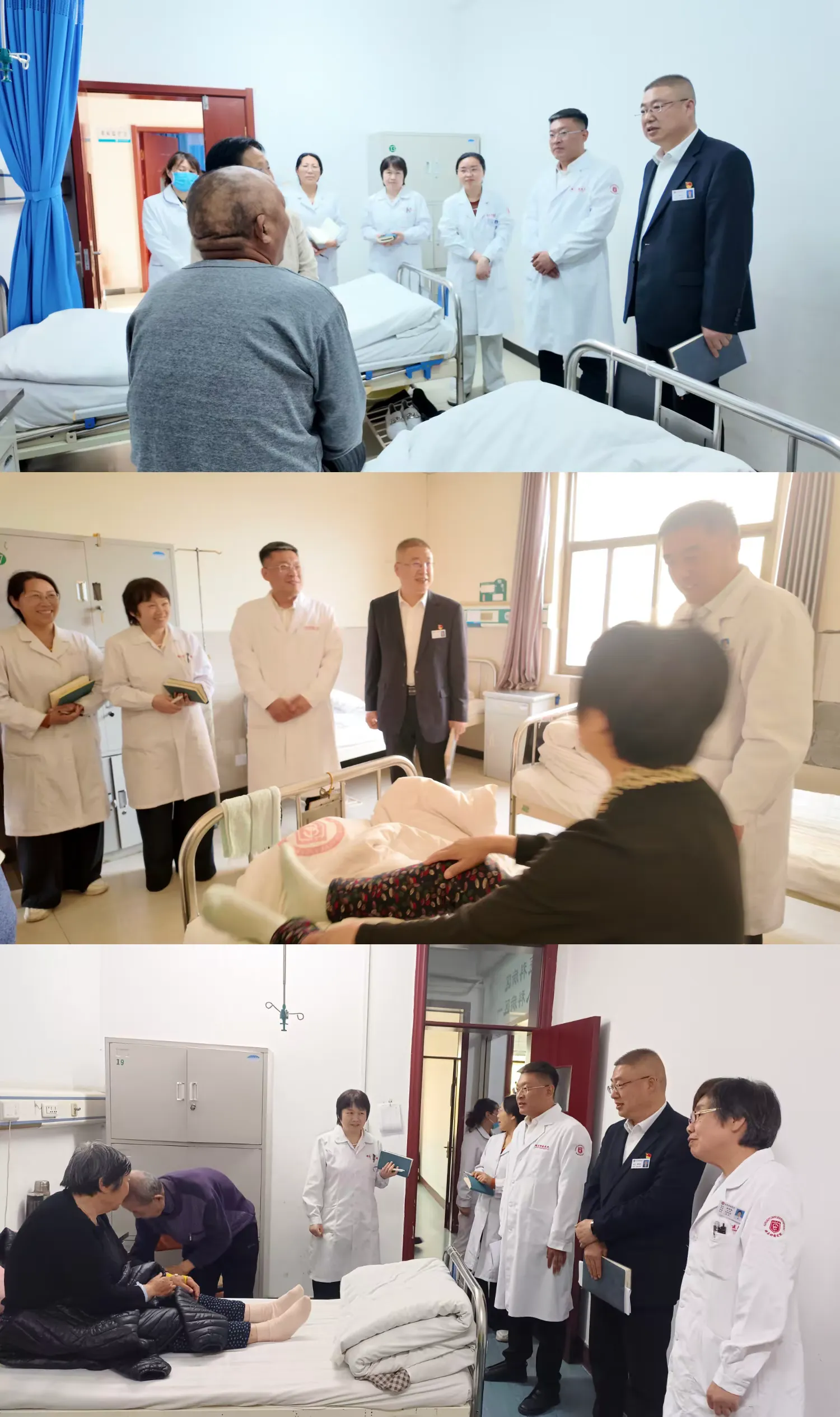 院领导班子主动走到患者病床旁,与患者及家属亲切交谈,详细询问患者的病情、恢复情况和就医过程中的感受与建议。面对患者及家属提出的疑问和诉求,领导班子耐心倾听、认真记录,针对能够现场解决的问题,当场明确整改措施、落实责任人员,第一时间予以回应解决;对于需要进一步协调完善的事项,逐一建立问题台账,明确整改时限,确保患者诉求不积压、问题整改不拖延,用务实举措回应患者期盼。